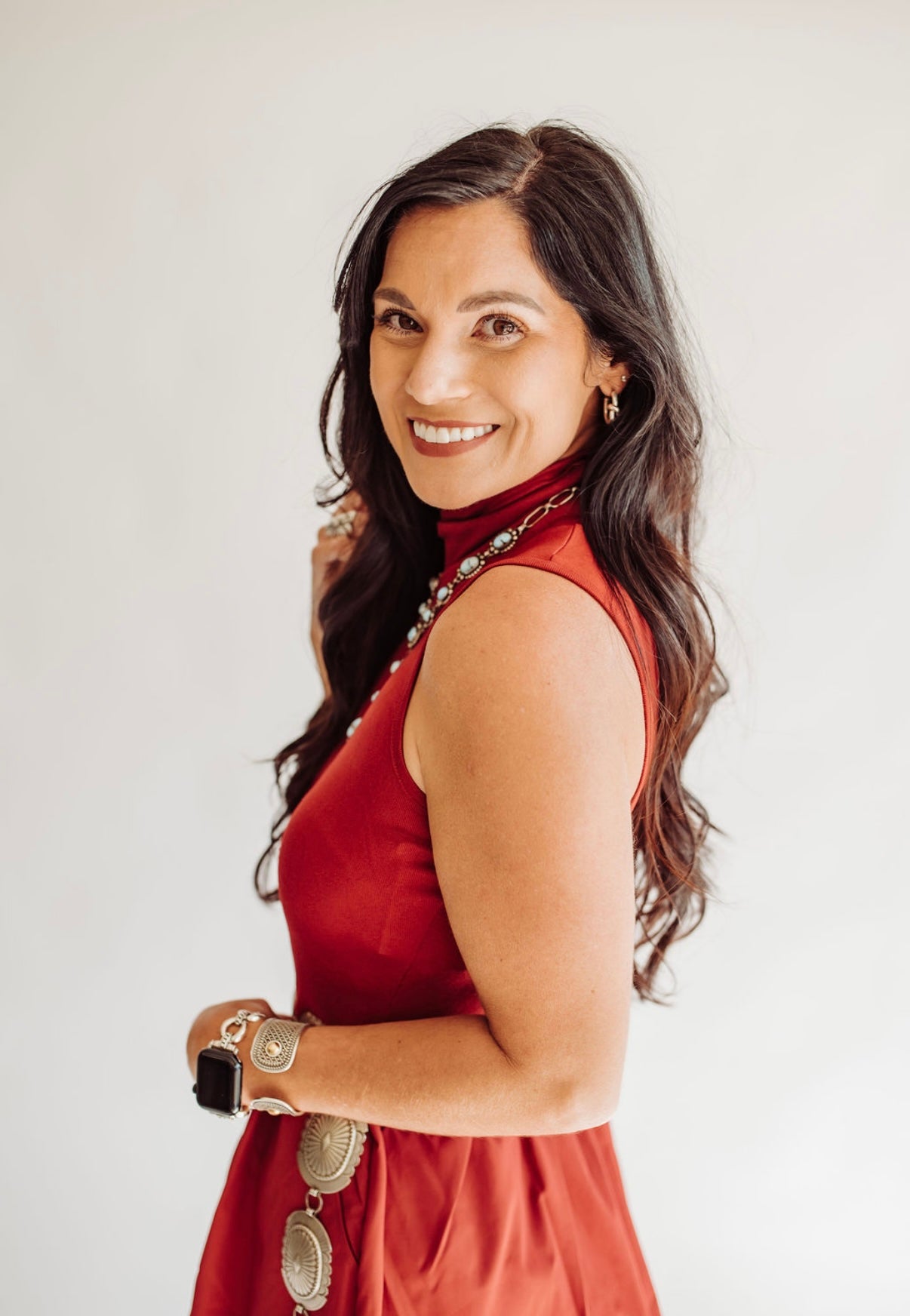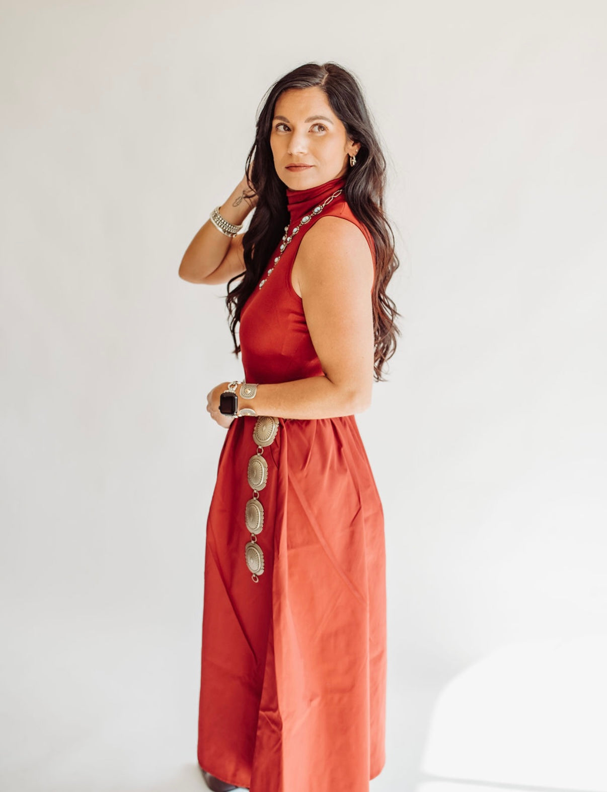 Kyla mock neck crimson midi dress