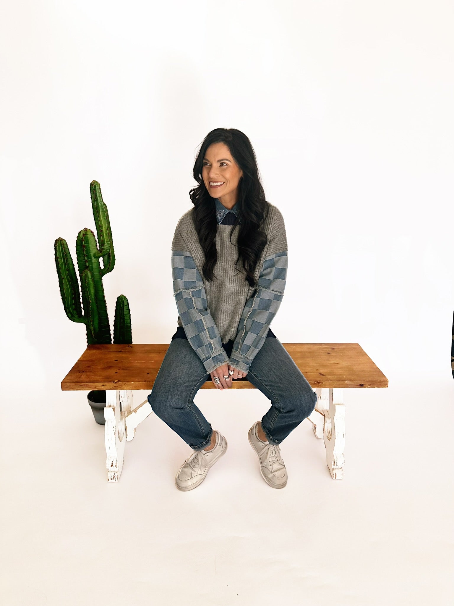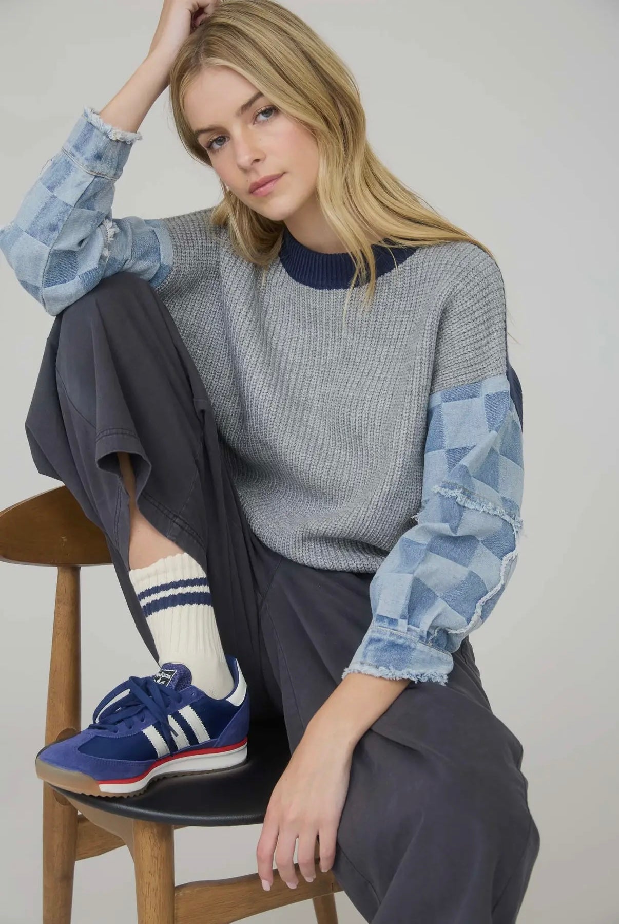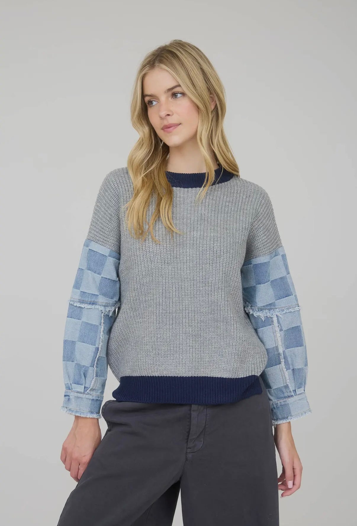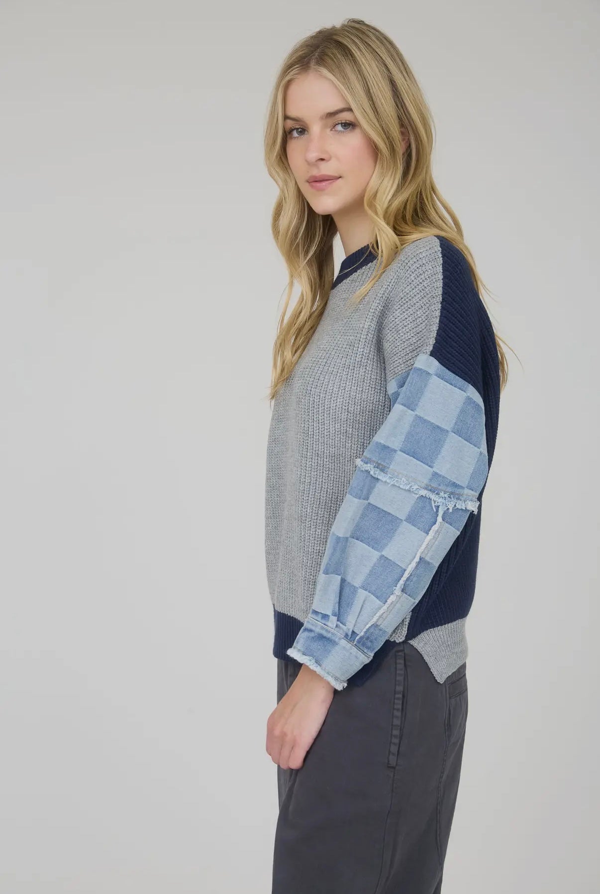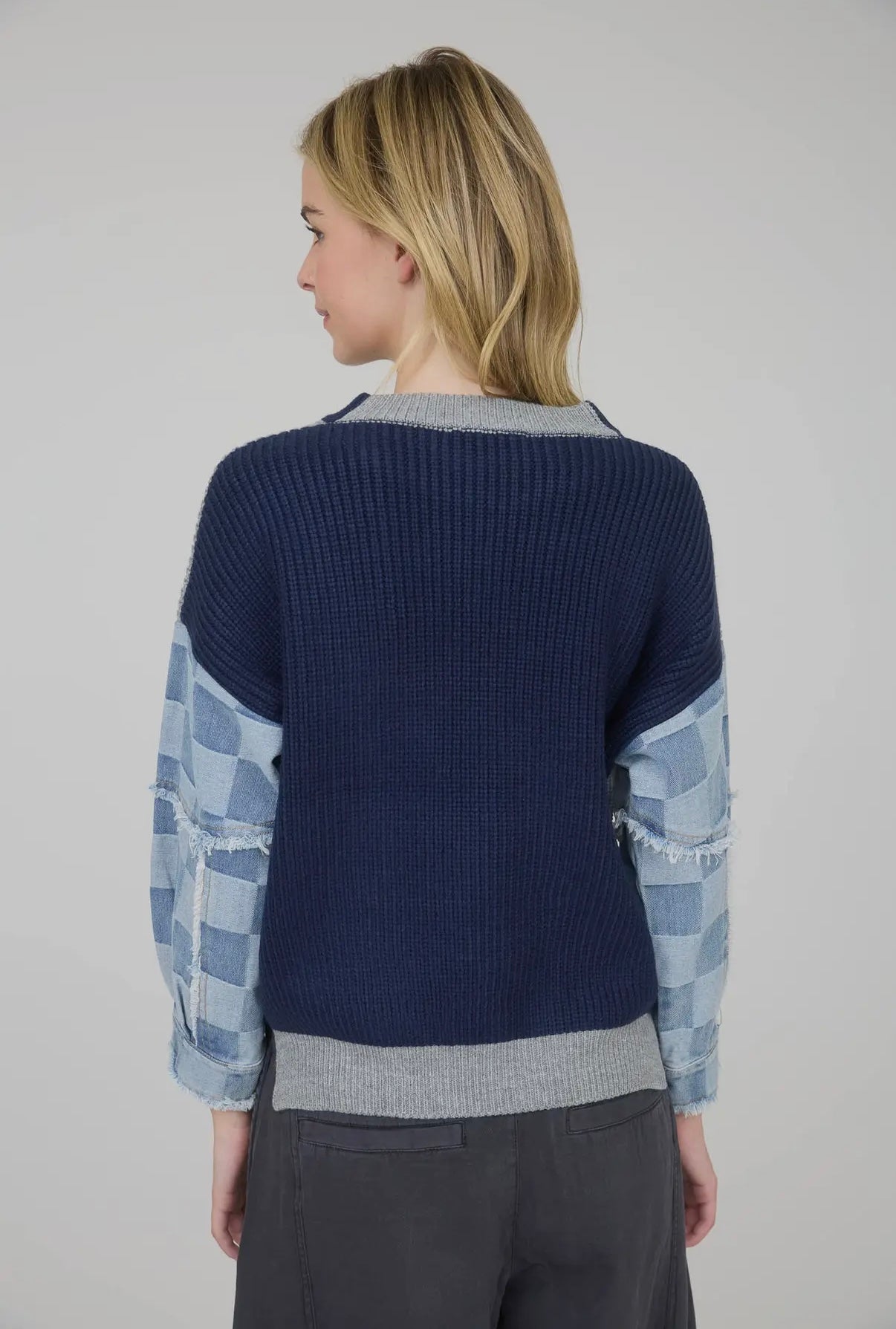 Chelsey checkered denim sleeve sweater