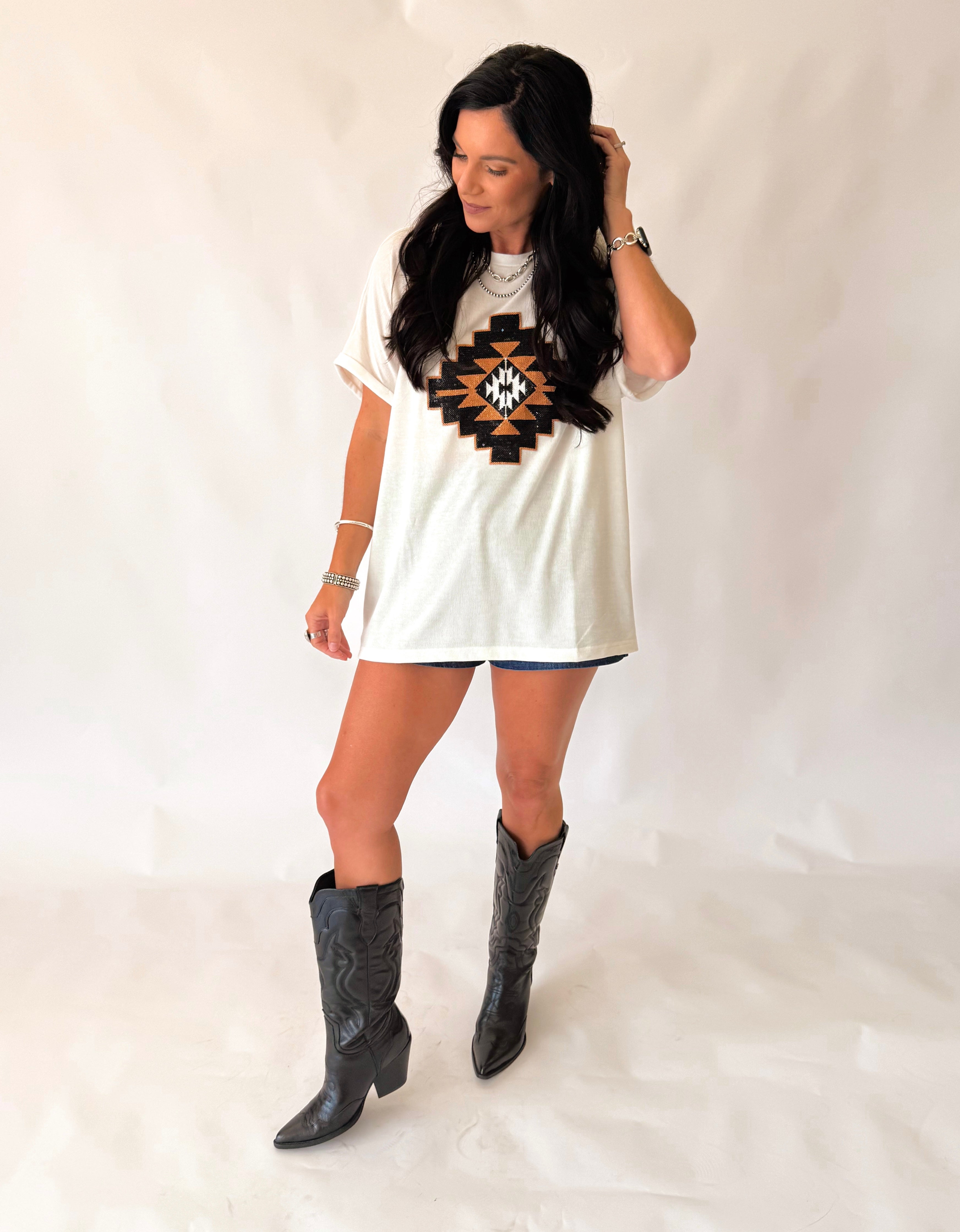 Paula subtle shimmer Aztec top